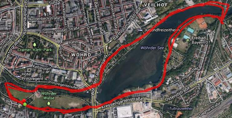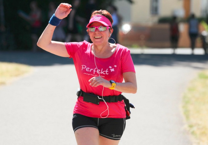 Pretty in pink! Schon wieder! Letzte Woche noch in Roth beim Challenge Women, heute auf der Wöhrder Wiese beim Nürnberger Frauenlauf. Ich habe meine Mutter eingeladen, mich an diesem Tag zu begleiten und mich anzufeuern. Wir sind um 11:45 Uhr an der U-Bahn Wöhrder Wiese verabredet. Aber ich mache mich schon früher fertig: pinkes T-Shirt (vom letzten Frauenlauf), pinkes Visor und die pinke Sonnenbrille, die ich mir letzte Woche ganz neu auf der Challenge Messe gekauft und noch nie getragen habe - und fahre los. Ich habe Glück: ein Parkplatz, gleich oberhalb der Wöhrder Wiese direkt am U-Bahn-Abgang. Der kürzeste Weg zur Wiese führt durch die U-Bahnunterführung und dann höre ich auch schon laute Stimmen aus Lautsprechern. Noch einmal um die Ecke und da ist die Wöhrder Wiese - ganz in pink. Das Motto des heutigen Tages: du bist perfekt! Organisiert wird der Lauf von Anita Kienle, Vorsitzende des Club 21, der Verein, der Menschen mit Down-Syndrom zum Laufen bringt, bzw. beim Laufen begleitet. Anita hat selbst ein Kind mit Down-Syndrom und hat es sich zum Lebensinhalt gemacht, Menschen mit Down-Syndrom zu zeigen, dass sie genauso perfekt sind, wie andere Menschen - und will anderen Menschen genau das vermitteln: wir sind alle perfekt, so wie wir sind. Ich überquere die Wiese, schaue mal an den Ständen vorbei, übergebe Günter Kratzer ein T-Shirt vom letzten Indoor-Marathon für seine Sammlung (er hat mich schließlich letzte Woche in seinem Liegestuhl nach dem Challenge Women ausruhen lassen) und komme gerade rechtzeitig zum Start des Kinderlaufs. Mädchen stehen an der Startlinie, Anita sagt ein paar Worte und muntert auf, feuert an. Und dann rennen sie auch schon los. Es ist richtig Stimmung hier. Plötzlich werde ich erkannt, es tippt mir jemand auf die Schulter: Heike, ihr Mann Matthias und Vampy Sue, alle drei aus meiner Facebook-Freundesgruppe. Ich freue mich, sie mal persönlich kennenzulernen. Ich brauche noch mein Startershirt in pink - das gibt es dann am hinteren Ende der Wiese - die Schlangen geordnet nach Alphabet: A-H, I-Q, R-Z. Die kürzeste Schlange ist A-H, die zweitkürzeste I-Q, die längste, na, welche wohl: meine! Aber ich schaffe das, schließlich ist die Masse der Läuferinnen noch gar nicht da! Da steht auch plötzlich Petra. Sie läuft heute nicht mit, schaut sich aber hier mal um - und macht wieder tolle Bilder! Aber jetzt wird es Zeit, meine Mutter von der U-Bahn abzuholen. Sie ist noch nicht da, als ich dann an der verabredeten Stelle bin, aber es stellt sich dann heraus, dass sie auch schon früher da war und inzwischen bereits auf der Wiese war - wir müssen vorhin direkt aneinander vorbeigelaufen sein :-). Sie hat das T-Shirt mit den pinken Blumen an, das ich ihr zu ihrem 70. Geburtstag genäht habe - also auch sie: pretty in pink! Wir laufen ein bisschen herum, setzen uns zu einer dieser Hütten in den Schatten, trinken Kaffee, gehen nochmal ins Toilettenhäuschen. Wir beobachten die Showbühne. Zumba in DER Hitze! Immer mehr Frauen machen mit - auch 1 Mann, er hält die Männerquote hoch! Und dann geht es Richtung Start. Meine Mutter platziert sich derweil vorne, um zu fotografieren. Die Bilder werden aber etwas auf sich warten lassen, sie hat noch einen alten, konventionellen Kleinbildapparat. Ich stelle mich in das hintere Drittel und warte, dass es los geht. Langsam werde ich unruhig, als es nicht losgeht, 14:00 Uhr bis 16:00 Uhr sollten die Frauen laufen, jetzt ist es schon 10 Minuten nach offizieller Startzeit! Vorne hört man eine leise Stimme, die irgendwelche Anweisungen gibt, Trommeln, irgendetwas geht dort vor sich. Aber hier hinten hört man leider gar nichts. Plötzlich fliegen vorne pinke Luftballons in die Luft und die Damen schreien. Los gehts! Langsam setzt sich die Schlange in Bewegung, an der Startlinie drücke ich den Knopf der runtastic App, stelle noch ein bisschen Musik an, einen Kopfhörer ins linke Ohr. Und schon höre ich Aufmunterung von runtastic-App-Freunden. "Go, go, go" und trööööööööööööt, tröööööööööööööööööt, I like it! Das muntert auf. Aber ich habe mich an die falsche Stelle in die Schlange gestellt, hier läuft es mir zu langsam! Ich umrunde Walker, einige Läufer und irgendwann kann ich endlich laufen. Inzwischen sind wir am Norikus angekommen und meine App teilt mir mit, dass ich bereits einen Kilometer gelaufen bin - in einer guten Zeit, wundert mich bei dem langsamen Anfangstempo!. Weiter gehts, die Schlange schiebt sich am südlichen Ufer des Wöhrder Sees entlang, lauter pinke Shirts auf einem Haufen, erstaunte Spaziergänger, die schnell Platz machen! Zur Eisenbahnbrücke kürze ich ab, indem ich die Treppe nehme - und jetzt wird es endlich ein bisschen offener, die Schlange reißt langsam ein bisschen auseinander. Treppe runter und rechts abgebogen. Und jetzt wird es richtig hart: Es geht auf einen betonierten Steg ein Stückchen in den Wöhrder See hinein und dann daran entlang. Die Sonne brennt hier unerbittlich, heißer Betonboden, es hat immerhin 33°C im Schatten. Aber hier ist es unerträglich, ich ziehe das Tempo an, damit ich schnell wieder in den Schatten kann. Nach dem Steg gibt es Wasserversorgung. Endlich! Das tut gut. Ich gehe ein Stück und schütte mir den Rest des Wassers in den Nacken. Aber die Sonne ist auf dieser Seite des Sees wirklich höllisch - wenig Schatten und die Hitze kommt von oben - und von unten, der Asphalt ist aufgeheizt. Unter der Straße durch und wieder in die Wöhrder Wiese, viele Zuschauer klatschen und feuern uns an. Meine Mutter steht da, knipst ein Bild und fragt, ob ich noch eine Runde laufen will. Ich hebe den rechten Daumen und sage ja, noch eine aber keine zwei. Und dann wird die Wöhrder Wiese umrundet. Dort lege ich nochmal eine Gehpause ein. Dann kommt der Entscheidungsbereich: diejenigen, die noch eine oder mehrere Runden laufen wollen laufen gerade aus weiter, nochmals durch das Starttor, diejenigen, die aufhören, biegen lin